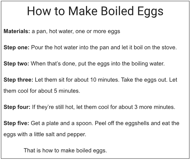 – By using strong commanding verbs the student demonstrates a grasp on the language of instructions.